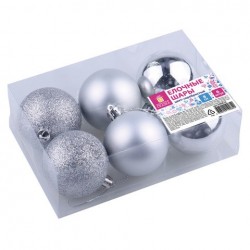 Набор шаров 6 шт/уп. 8 см "Золотая сказка" пластик серебро арт.590876