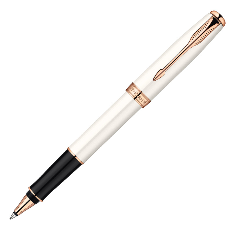 Ручка-роллер «Паркер Соннет Перл Лак Пи Джи Ти». Инструмент для письма, линия письма –тонкая, цвет чернил – черный, в подарочной упаковке. Произведено во Франции.