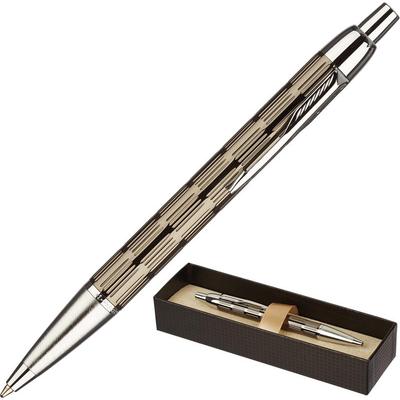 Шариковая ручка Parker IM Prem. имеет латунный корпус темно-серого цвета с продольной гравировкой. Детали отделки — с хромированным покрытием. Оснащена кнопочным механизмом. Комплектуется подарочным футляром и стержнем с пастой синего цвета.