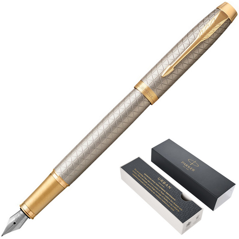 Перьевая ручка Parker IM имеет латунный корпус серого цвета с гравировкой. Перо толщины F выполнено из нержавеющей стали, декоративные детали выполнены из позолоты. Оснащена клипом (зажимом). Поставляется в подарочном футляре. Parker IM Premium выражение высокого классического стиля в новых отделках с нежной текстурой. Совершенный баланс между современным дизайном, оптимальной функциональностью, традицией и современностью. В комплекте идет один картридж синего цвета.