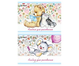 Альбом для рисования, 8л., А4, Пушистые зверята, картон, офсетный лак, на скобе