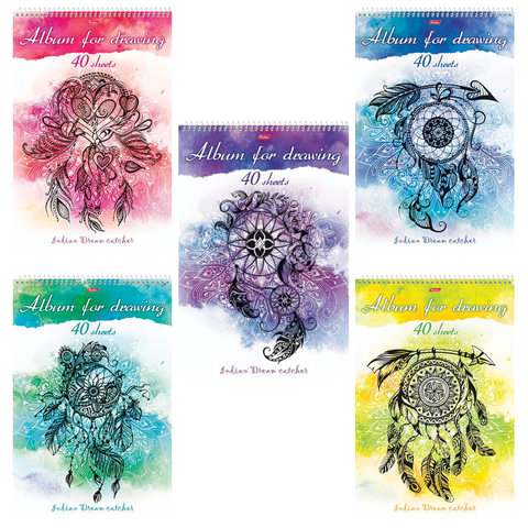 Серия альбомов для рисования с ярким разнообразным оформлением обложки.