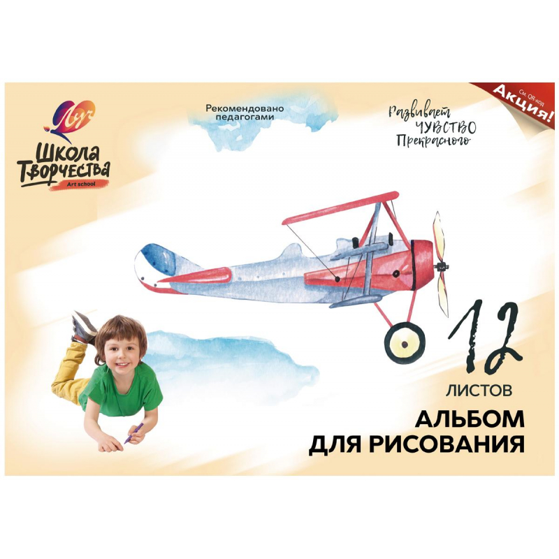 Альбом для рисования "Луч" 12 л. А-4 на скрепке бл/100гр/м2 "Самолет" арт.1775-08