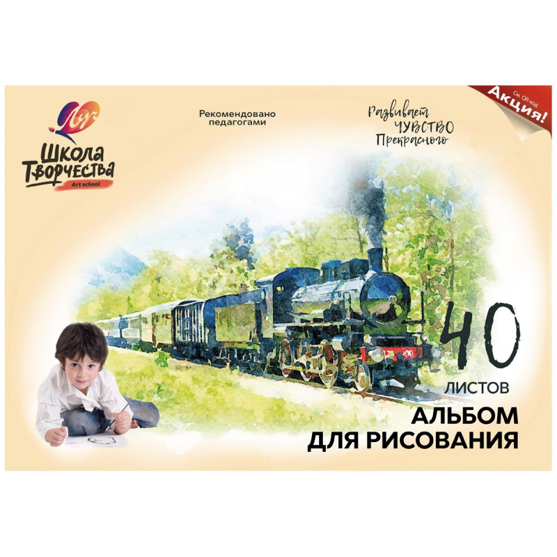 Альбом для рисования "Луч" 40 л. А-4 на скрепке бл/100гр/м2 "Паровоз" арт.1783-08