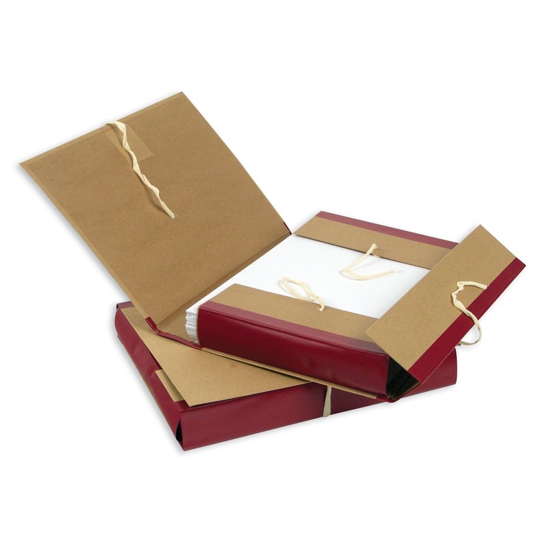 Архивная папка Attache формата А4 выполнена из плотного картона, обтянутого крафт-бумагой бордового цвета. Корешок шириной 5 см — из бумвинила (слой ПВХ на бумажной основе). В закрытом виде фиксируется с помощью четырех завязок. Вмещает до 350 листов стандартной плотности.