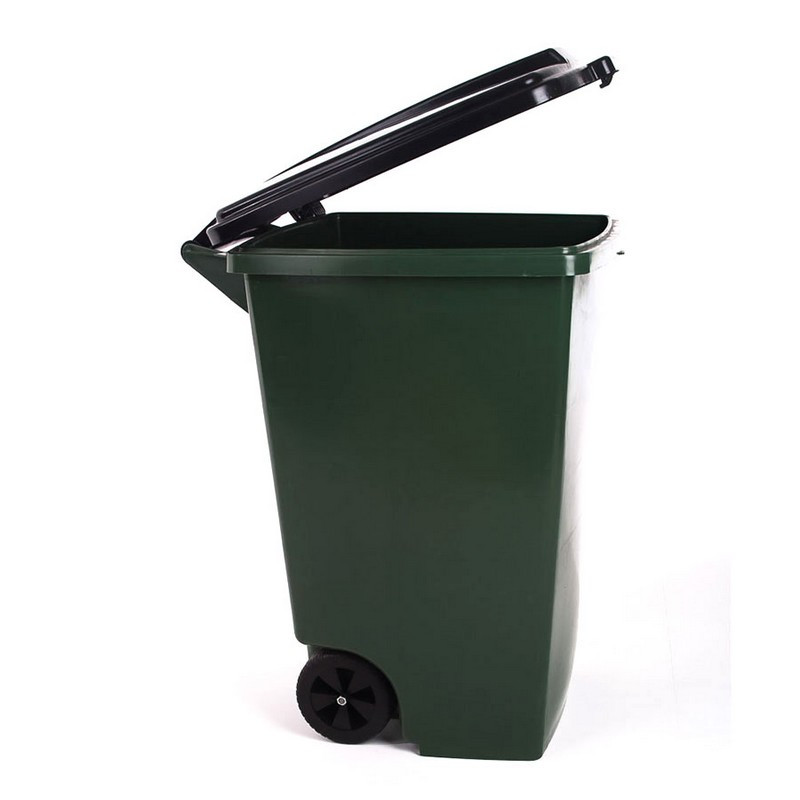 Контейнер-бакмусорный 120л пластиковый на2-хколесах cкрышкой зеленый Бак мусорный 120л предназначен для сбора, хранения, транспортировки всевозможных бытовых отходов: пластика, бумаги, пищевых, стекла и др. Емкость удобна в обслуживании: полимерный инвентарь несложно очищать от загрязнений, высота позволяет человеку аккуратно класть мусор внутрь, габариты не требуют большой площадки для размещения бака. Комфортность транспортировки обеспечивают крупные пластиковые колеса. Плотно прилегающая к верхней кромке крышка предотвращает распространение запаха отходов, но педального механизма ее подъема нет. Фиксация открытой крышки непредусмотрена. Допустима эксплуатация бака притемпературах в диапазоне от -40 до +60°С. Высота емкости (скрышкой): 72 см. Размеры поверхнему контуру: 56x50,6см. Ширина: 50,6 см. Диаметр колес: 145 мм. Размеры крышки: 54x54 см. Материал:полиэтилен высокой плотности низкого давления (HDPE). Легкий, высокопрочный, устойчивый кагрессивным химическим и биовеществам, выцветанию, перепадам температур. Цвет:зеленый. Общий вес (скрышкой):3,6кг.