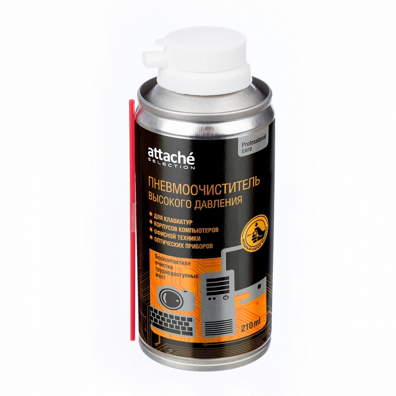 Баллон со сжатым воздухом для очистки оргтехники. Объем баллона 210 мл, номинальный объем вещества 150 мл. Пневмоочиститель высокого давления c регулируемой интенсивностью предназначен для бесконтактной очистки труднодоступных мест компьютеров и оргтехники. Данное средство позволяет очистить от пыли клавиатуру, компьютерную мышку, внутреннее пространство корпуса компьютера, сканера, копира, CD/DVD-ROM, а также экранов, мониторов и оптических приборов. Трубочка для труднодоступных мест - в комплекте. Для надежной фиксации вставьте трубочку в головку распылителя до щелчка. Содержит в составе алифатические углеводороды более 30%. Не встряхивать перед использованием. Старайтесь держать баллон вертикально или под небольшим углом. Перед использованием на 1-2 секунды направьте струю воздуха в сторону для выдувания возможного конденсата. Огнеопасно! Баллон предохранять от воздействия прямых солнечных лучей и нагревания выше 50°С. Не распылять вблизи источников открытого огня и раскаленных предметов! Использовать строго при выключенном оборудовании! Объем баллона 210 мл.