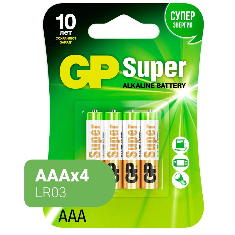 Батарейка GP Super AAA/LR03/24A алкалин.4шт/уп. блистер