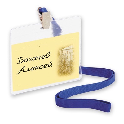 Горизонтальные бейджи Attache размером 120×87 мм имеют металлическую клипсу и тесьму синего цвета. Ширина ленты 10мм, длина 850мм. Предназначены для именной карточки размером 113 x 70 мм. Изготовлены из плотной прозрачной пленки с эффектом «апельсиновой корки». Поставляются упаковками по 10 штук.