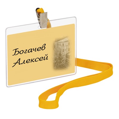 Бэйдж горизонтальный 120х87мм металл. зажим/тесьма желтый 1065 ГК-112