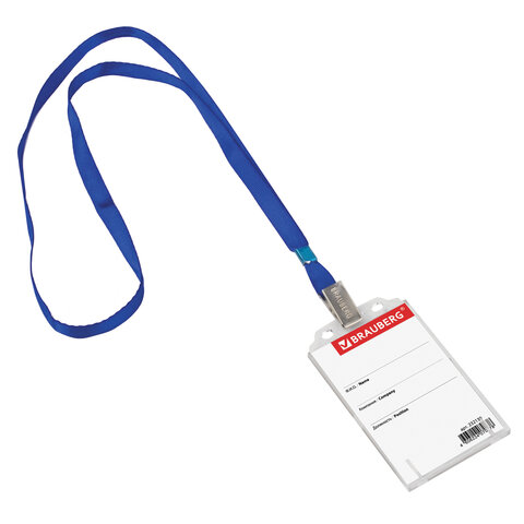 Бэйдж вертикальный "Brauberg" 85х55мм. тв/пластик на синей ленте 45 см. арт.232139
