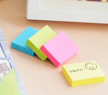 Самоклеящийся бумажный блок для записей, выполнен в неоновых цветах