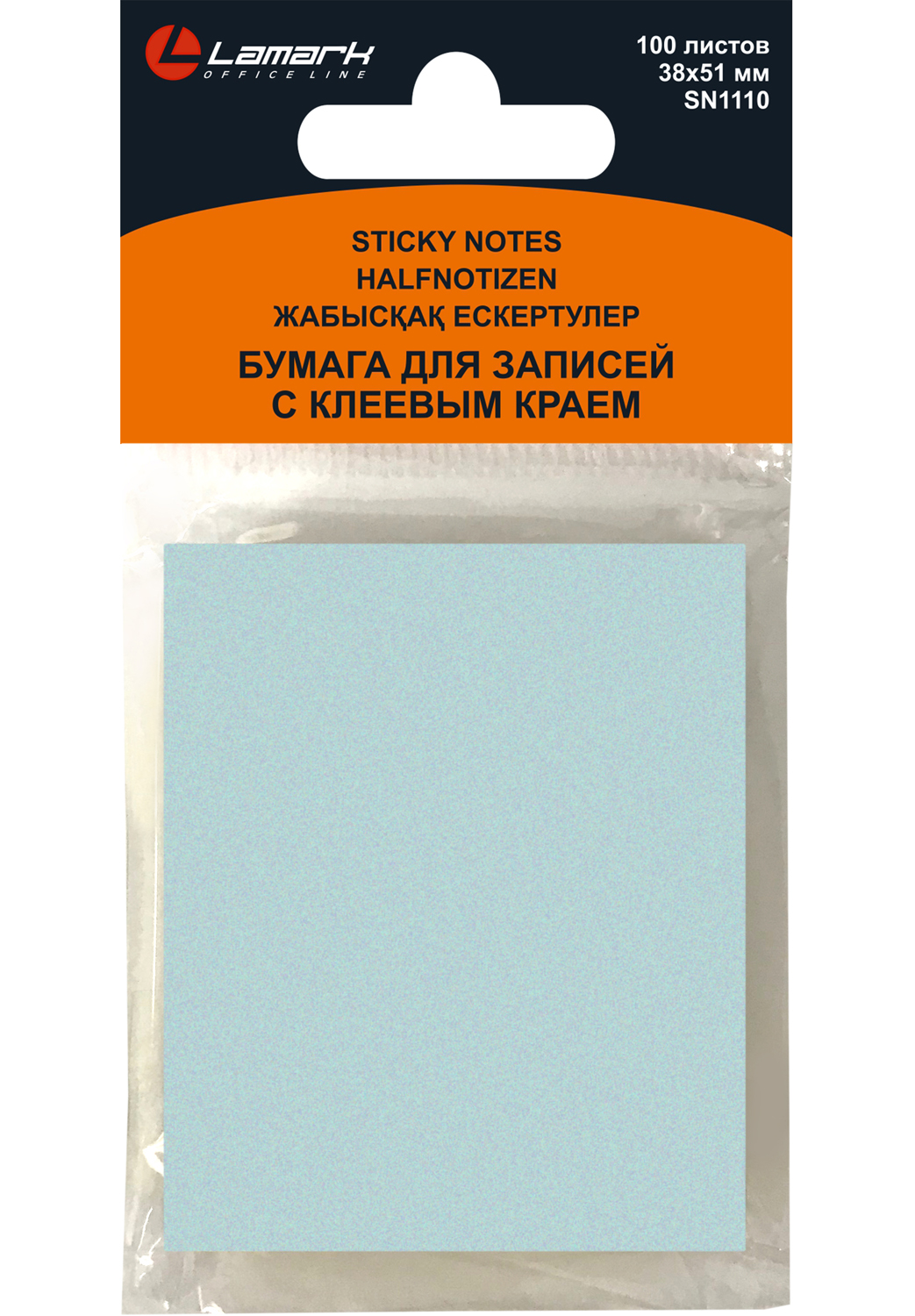 Бумага для заметок Lamark с клеевым краем, цвет голубой пастельный, 100 листов в блоке, размер 38x51 мм. Листы надежно крепятся на любые поверхности и при удалении не оставляют следов. Поставляется в индивидуальном пакете с липким клапаном с еврослотом