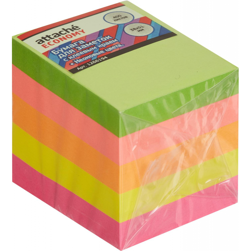 Стикеры Attache Economy в формате 38x51 мм, состоят из 400 листов упакованных в пленку. Стикеры имеют 5 слоев из 5 неоновых цветов (пурпурный, желтый, оранжевый, розовый, зеленый). Плотность бумаги: 75 г/кв.м. Клейкий слой - 16 Н/м. Длина клейкой стороны 38 мм.