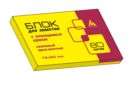 Блок липкий 50*76 Бюрократ 80 л. ярко-желтый 21132В