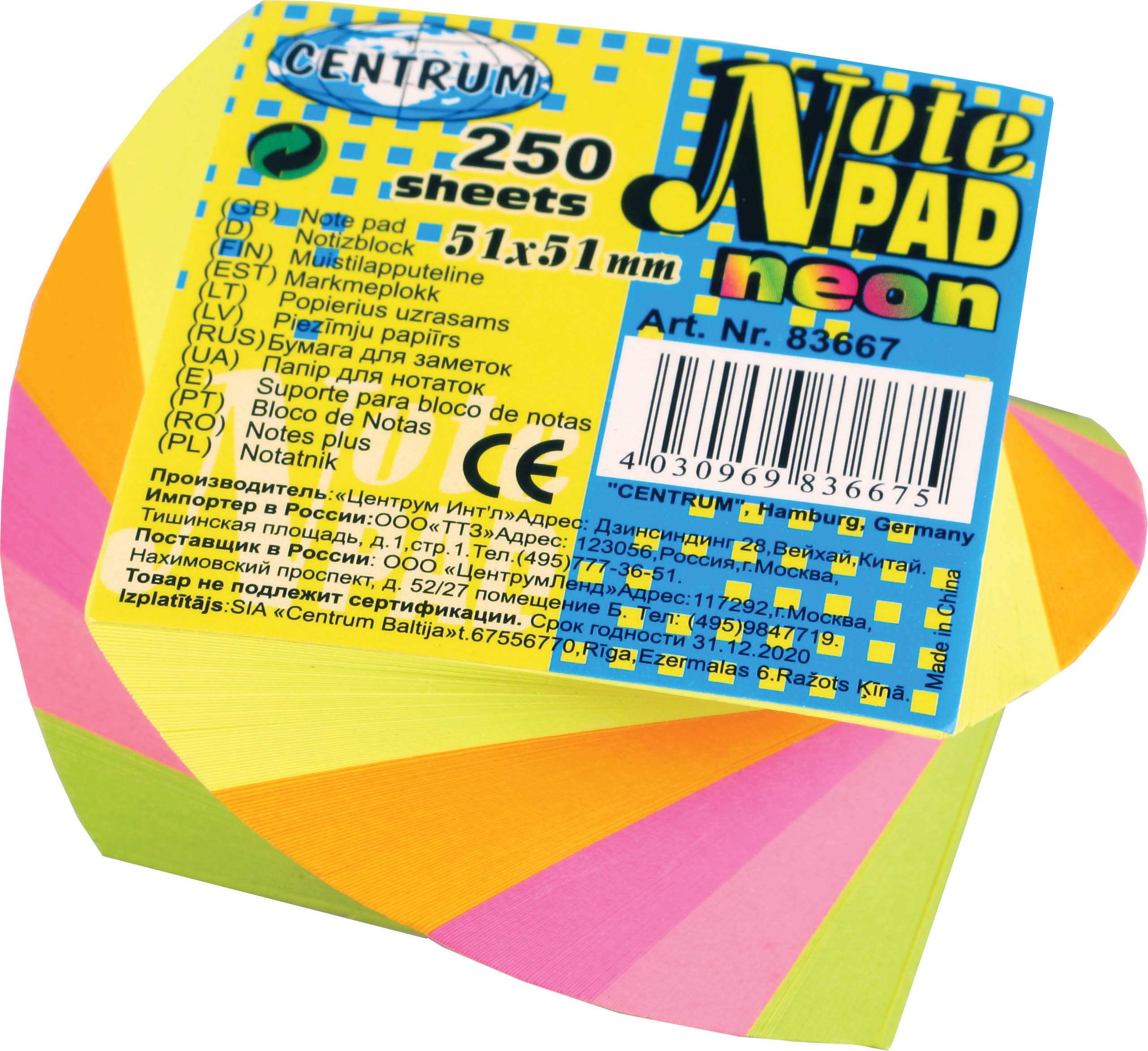 Бумага для заметок 51х51 мм 250 л.НЕОН-витой блок.