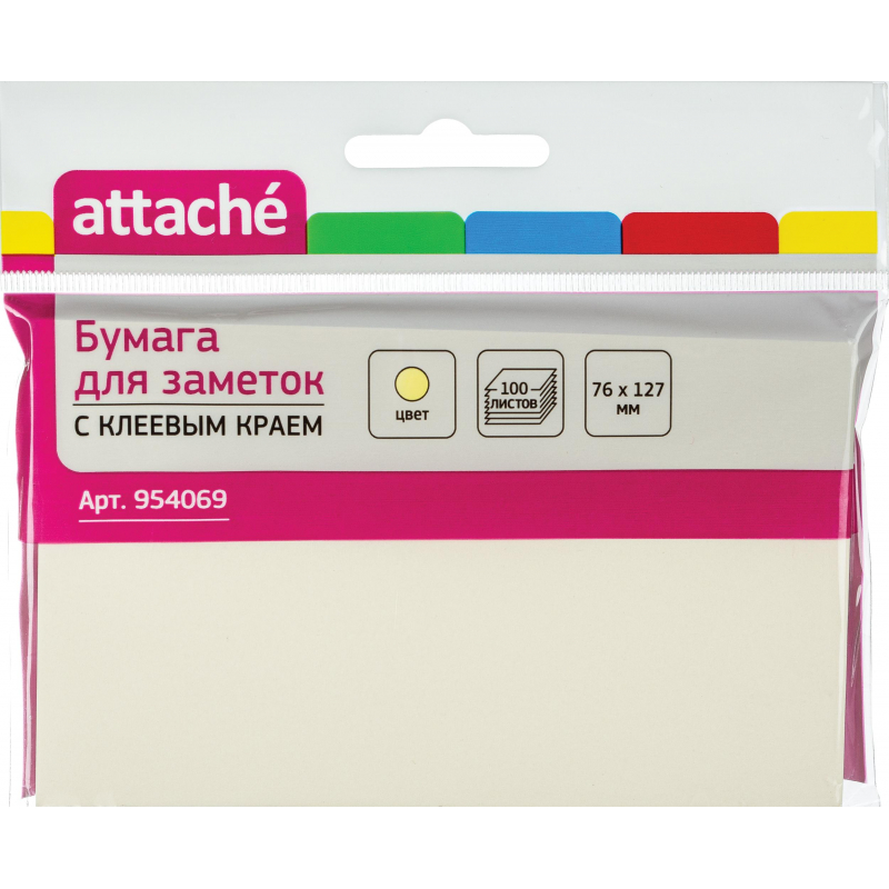 Стикеры Attache в формате 76x127 мм, желтого цвета, 100 листов. Идеально подойдут для сотрудников творческих профессий и руководителей: рекомендуются для использования в процессе совещаний, обучения, мозговых штурмов. Тон стикеров - пастельный. Плотность бумаги: 60 г/кв.м. Клейкий слой - 21+2 Н/м. Длина клейкой стороны 76 мм. После удаления бумаги на поверхности не остается следов клеевого состава, лист можно крепить повторно.