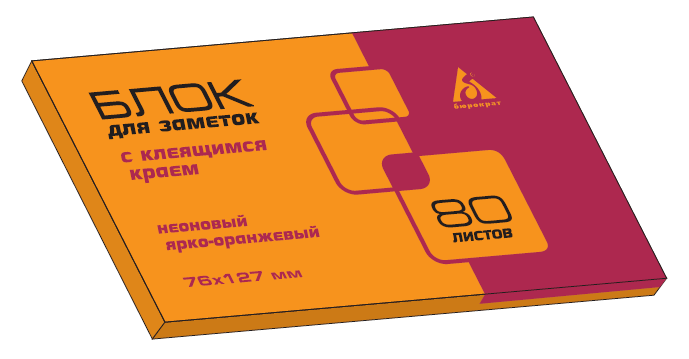 Тип: Самоклеящийся блокПрименение: Для записей и заметокРазмеры: 76 х 127 ммЦвет: Оранжевый неонКоличество: 80 листов