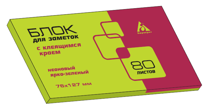 Тип: Самоклеящийся блокПрименение: Для записей и заметокРазмеры: 76 х 127 ммЦвет: Зеленый неонКоличество: 80 листов