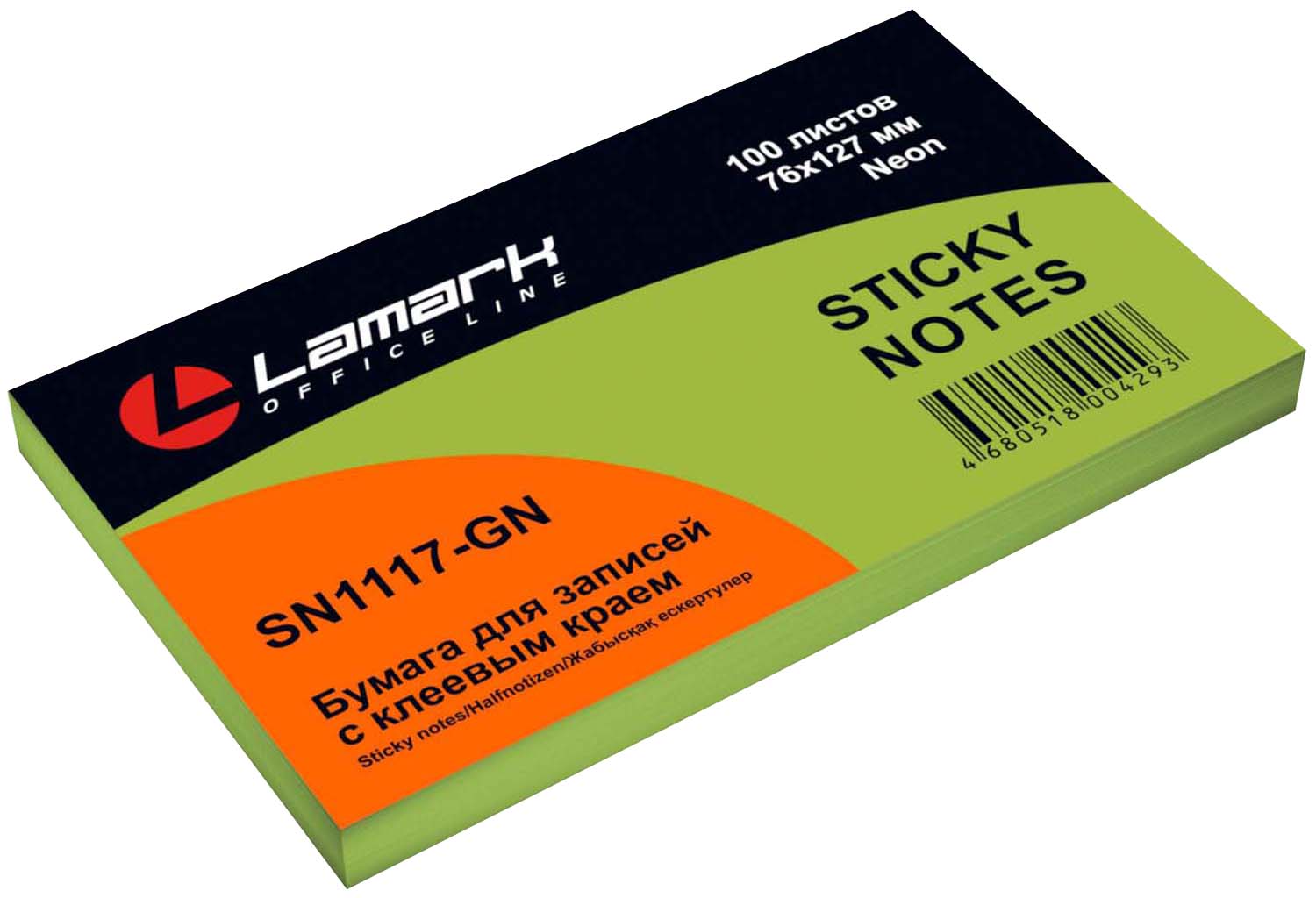 Блок липкий 76*127 Lamark 100л. неон зеленый N0117-GN
