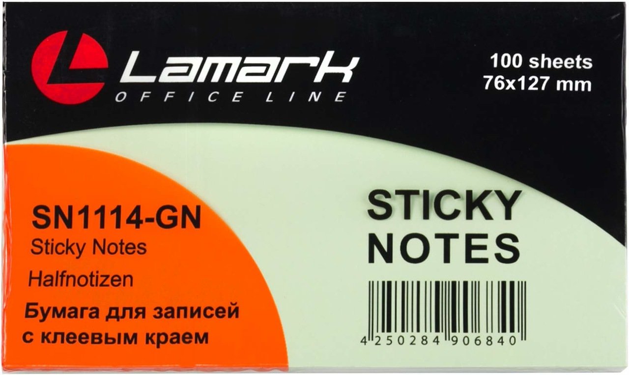Блок липкий 76*127 Lamark 100л. пастель зеленая N0114-GN