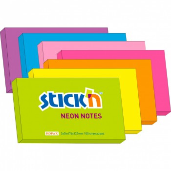 Самоклеящийся бумажный блок для записей, выполнен в неоновых цветах