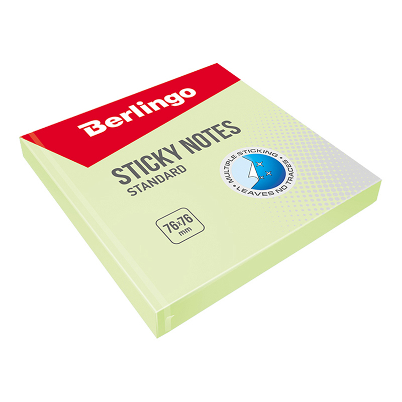 Блок бумаги для записей с клеевым краем Berlingo Standard отлично подойдёт для сохранения важной информации. Плотность бумаги для заметок составляет 60 г/м2. Размер листа в блоке для заметок 76*76 мм. В упаковке 100 листов зелёного цвета. Блок для записей изготовлен с использованием качественного клеевого состава и специальной основы, позволяющей клею полностью оставаться на отрываемом стикере. При отрывании листы не закручиваются, а качество письма остается одинаковым по всей площади стикера.