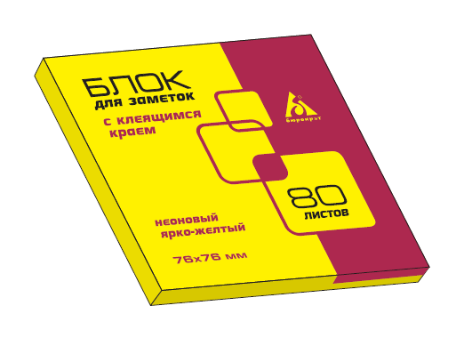 Тип: Самоклеящийся блокПрименение: Для записей и заметокРазмеры: 76 х 76 ммЦвет: Желтый неонКоличество: 80 листов