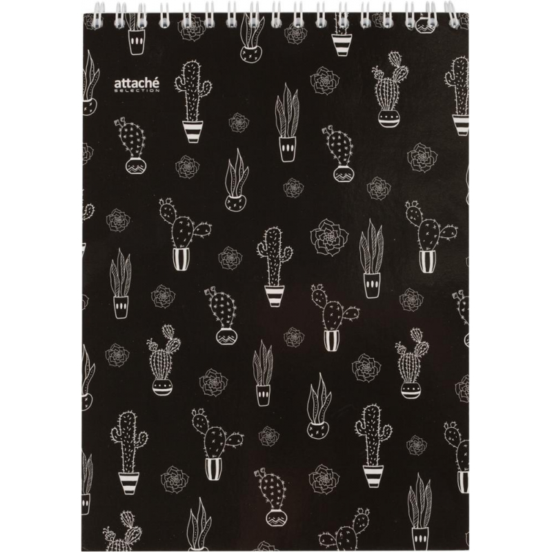 Блокнот Attache Selection Llamas офисного дизайна. Обложка блокнота, выполненная из высококачественного целлюлозного картона, защищает бумагу от деформации. Блокнот, скрепленный сверху по короткой стороне металлическим гребнем (спиралью), состоит из 80 листов (160 страниц). Размер блока: 145x203 мм. Бумага из офсета 100% белизны разлинована в клетку. Блокнот имеет формат А5. Плотность обложки 200 г/кв.м, обложка покрыта глянцевым лаком. Цвет обложки - черный