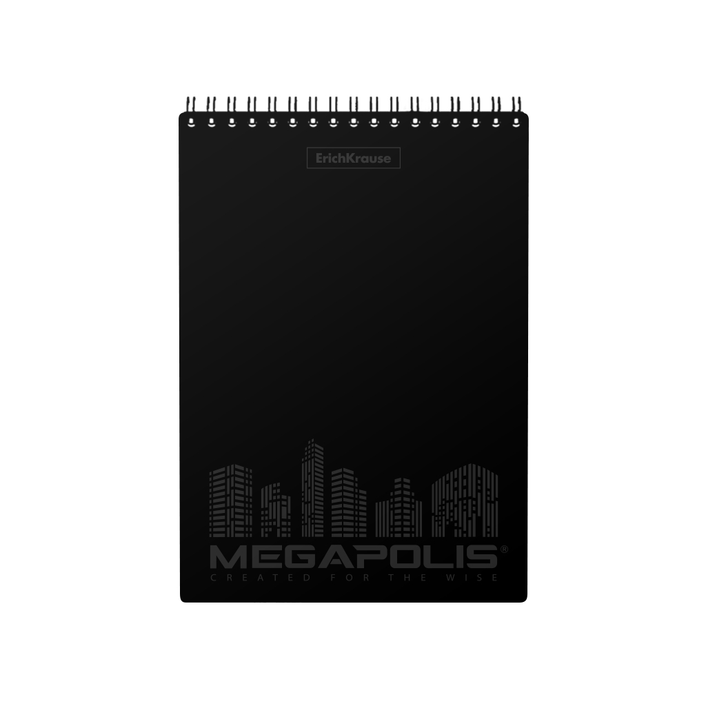 Блокнот с пластиковой обложкой на спирали ErichKrause® MEGAPOLIS®, черный, А5, 80 листов, клетка, микроперфорация