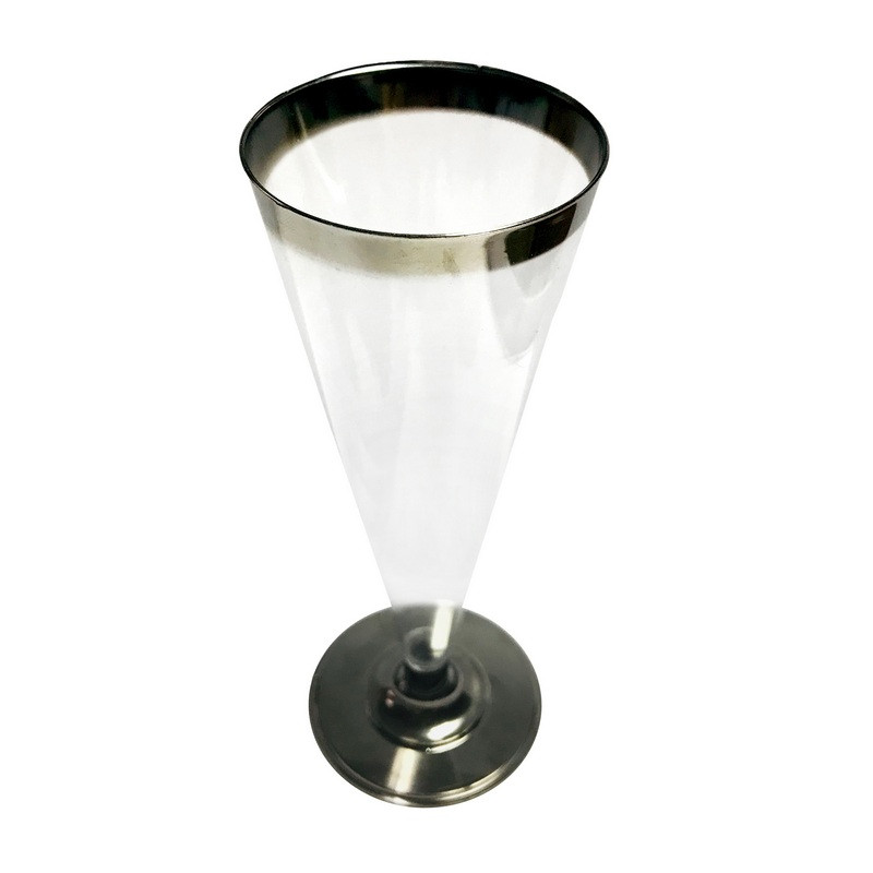 Бокал одноразовый для шампанского Винтаж пластиковый прозрачный 150 мл 6 штук в упаковке Бокал пластиковый металлизированный прозрачный предназначен для холодных и горячих напитков (до +70 °С). Для одноразового использования. Не допускать контактов с открытым огнем, нагревательными приборами и агрессивными средами. Срок годности не ограничен. Объём 150 мл. 6 штук в упаковке, 54 упаковки в коробе. Верхний диаметр: 60 мм. Нижний диаметр: 10 мм. Высота: 169 мм.