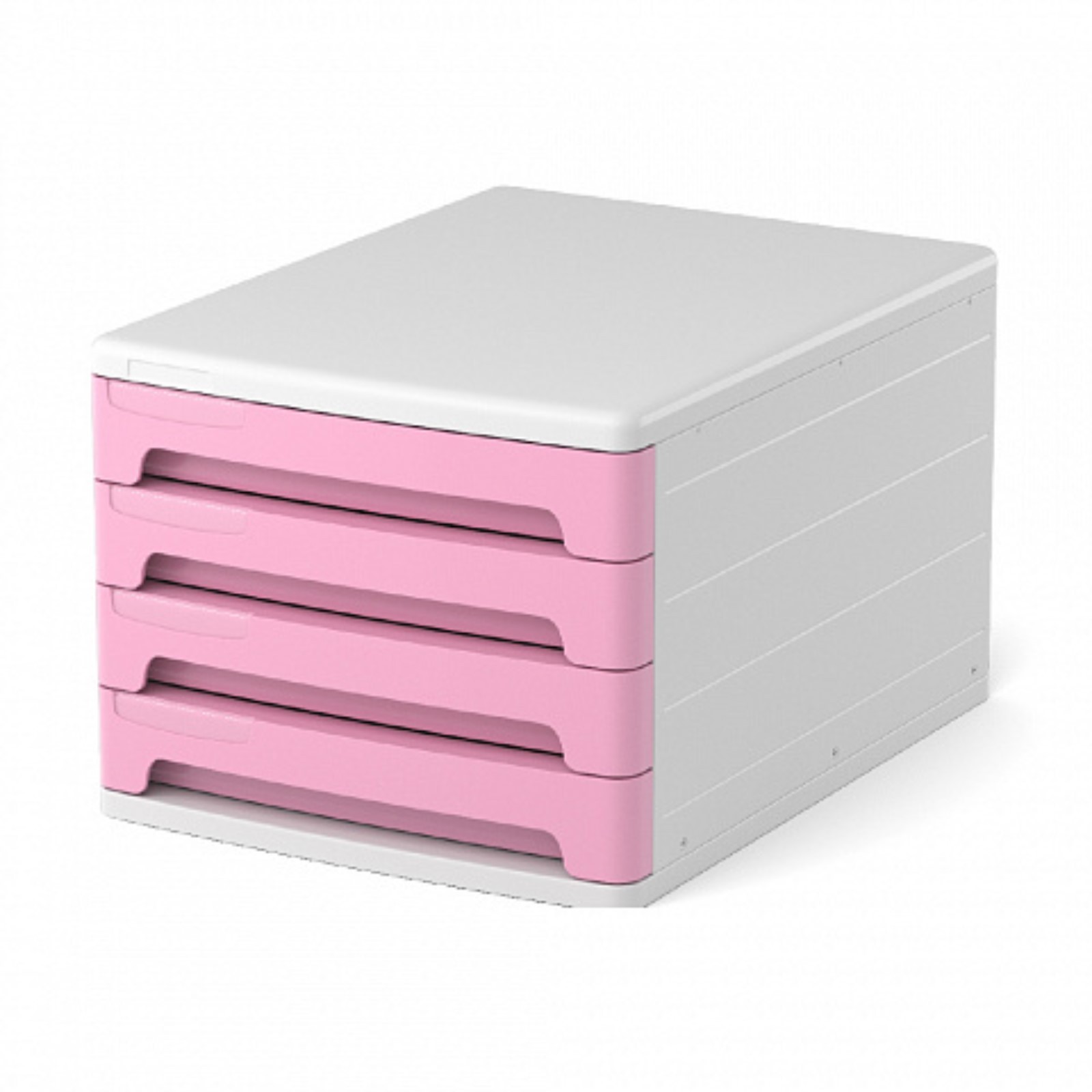 Бокс с выдвижными лотками "ErichKrause" Pastel 4 отделения белый с розовыми ящиками