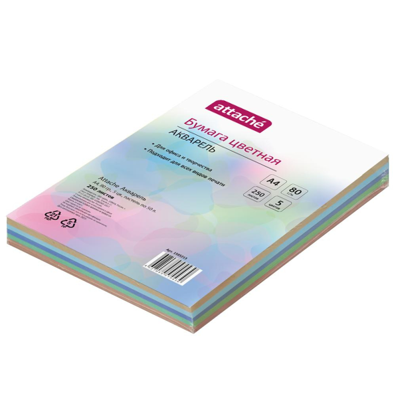 Цветная бумага для офиса Attache Акварель A4 предназначена для печати на копировально-множительной технике, лазерных и струйных принтерах. Идеально подходит для документов, презентаций, рекламных материалов, открыток. Мгновенно впитывает чернила и обеспечивает высокое разрешение. Одна пачка содержит 250 листов (5 цветов пастель по 50 листов каждого цвета) формата А4, плотность которых составляет 80 г/кв.м. Цвета: голубой, розовый, желтый, зеленый, бежевый. Упакована в прозрачные пакеты с многоразовым клапаном. Страна производства - Россия. Рекомендована ведущими производителями офисной техники. Цветопередача монитора может искажать реальный цвет продукта.
