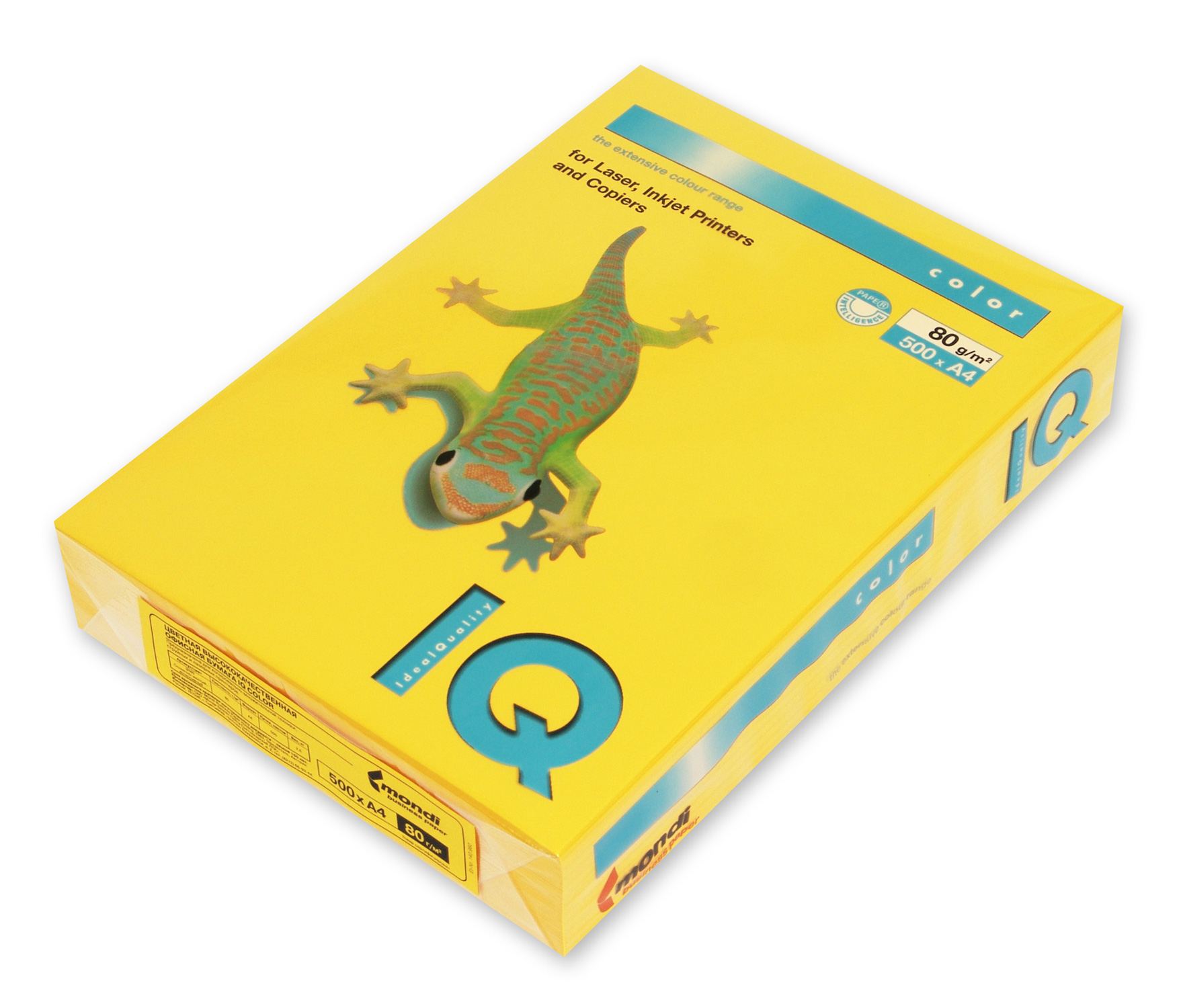 Бумага цветная IQ Color солнечно-желтого цвета применяется для печати на копировально-множительной технике, лазерных и струйных принтерах. Бумага с микропористым покрытием точно передает все оттенки, четкость изображения, мгновенно впитывает чернила и обеспечивает высокое разрешение (до 5760 dpi). Одна пачка содержит 500 листов формата А4, плотность которых составляет 80 г/кв.м. Прозрачная упаковка имеет многоразовый клапан.