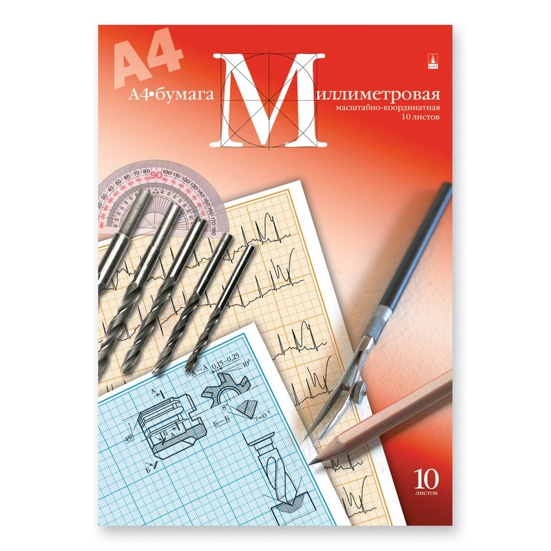 Миллиметровая бумага голубого цвета, предназначенная для нанесения чертежей и технических изображений вручную карандашом, линером, рапидографом, характеризуется плотностью 80 г/кв.м, благодаря чему устраняется просвечивание. Интервал больших линий — 5 см, малых — 1 мм. В папке из мелованного картона содержится 10 листов формата А4.