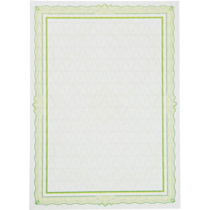 Сертификат-бумага предназначена для печати сертификатов, грамот и дипломов на любых принтерах. Изготавливается из бумаги с водяными знаками. Формат А4, в пачке 50 листов, плотностью 100 г/кв.м, с рамкой зеленого цвета.