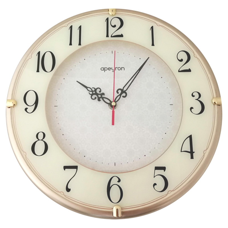 Часы настенные Apeyron PL 103 пластиковые круглые золотые 39.5x39.5x4 см.