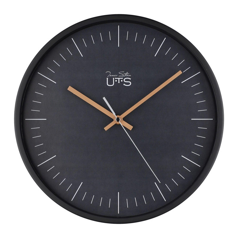 Кварцевые настенные часы. Стальной корпус матового черного цвета. Черный циферблат с контрастными белыми часовыми и минутными индексами закрыт стеклом. Механизм с плавным ходом секундной стрелки. Размеры часов (ВхШхГ): 32х32х5 см. Тип питания: 1 батарейка типа "АА" (в комплект не входят).