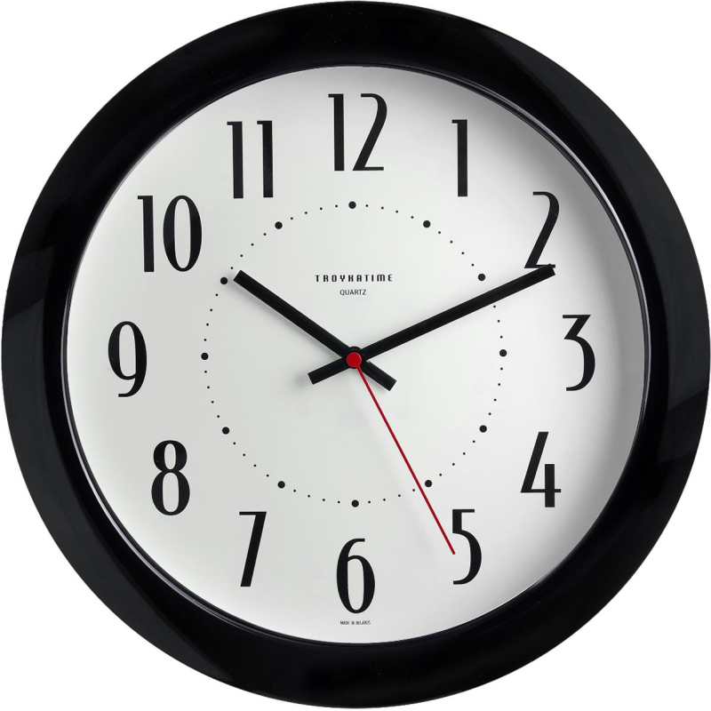 Настенные часы Troyka - классика во все времена, лаконичный дизайн и утонченность циферблата всегда хорошо будут смотреться как в офисе, так и дома. Корпус выполнен из пластика. Циферблат с арабскими цифрами защищен минеральным стеклом. Основным достоинством кварцевых часов считается высокая точность хода. В кварцевых часовых механизмах с плавным ходом секундная стрелка совершает полный оборот за 360 импульсов. Тем самым достигается визуально плавный, без рывков, ход секундной стрелки. Есть возможность нанесение логотипа. Материал корпуса - пластик. Цвет корпуса - черный. Вид цифр - арабские, материал защиты циферблата - минеральное стекло. Механизм - кварцевый. Габаритные размеры часов (ВхШхГ): 29x29x3,8 см. Тип питания: батарейки АА LR6 (пальчиковые) не входят в комплект.