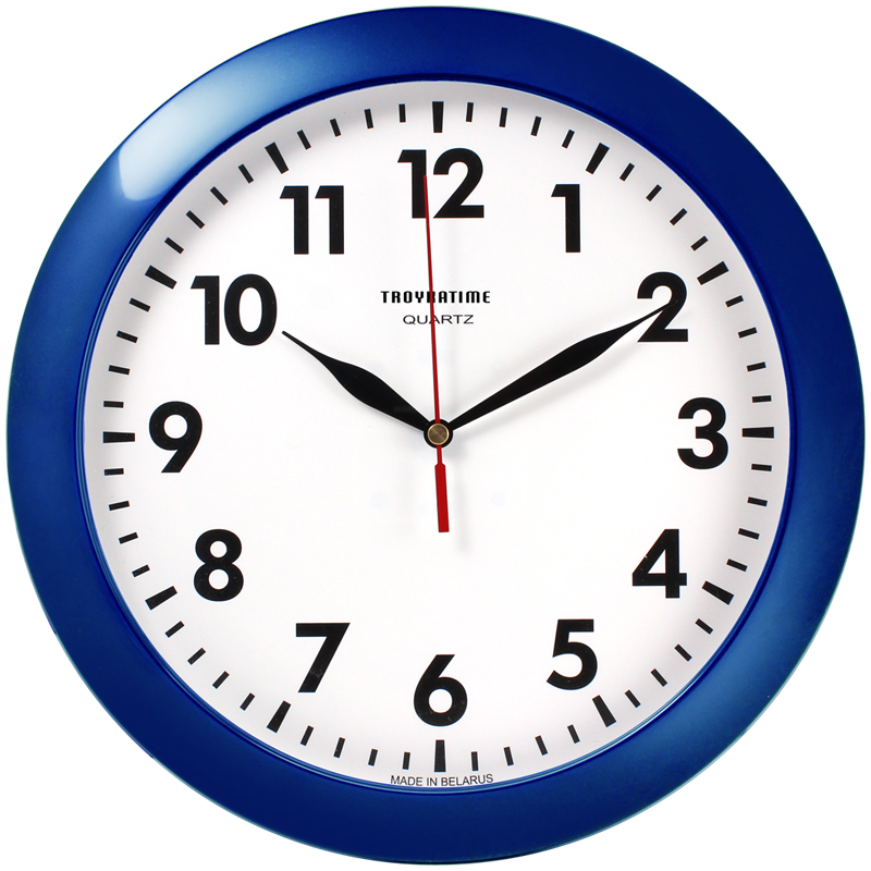 Часы настенные Troyka 11140118. Материал корпуса - пластик. Циферблат закрыт прочным пластиком. Механизм c плавным ходом. Диаметр - 290 мм. Часы работают от 1 элемента питания типа АА.