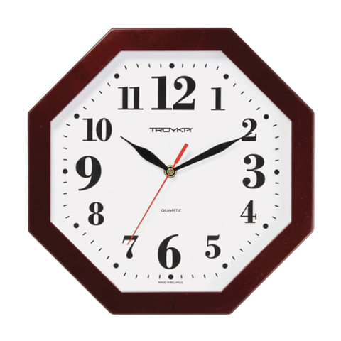 Часы настенные "Troyka" 41431416 d-290 плавный ход бордовая рамка 8-гранные
