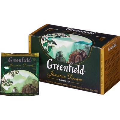 Зеленый чай в пакетиках Greenfield Jasmin Dream — это купаж чая с плантаций Юньнань и цветов белого жасмина. Воздушный цветочный аромат подчеркивает чистый освежающий вкус чая. Напиток богат антиоксидантами и витаминами В, С, РР, которые отвечают за молодость кожи и волос, повышают иммунитет. В коробке 25 пакетиков, каждый из них находится в отдельной фольгированной упаковке, что гарантирует сохранность аромата. Общий вес чая — 50 г.