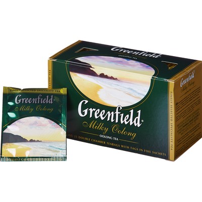 Превосходный черный чай в пакетиках Greenfield Milky oolong (молочный улун). В упаковке содержится 25 пакетиков. Общий вес чая составляет 50 г.