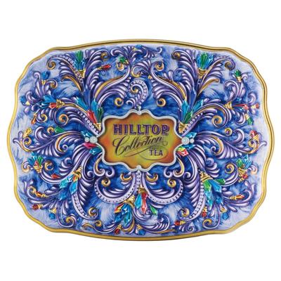 Чай Hilltop «Сверкающие самоцветы» в подарочной жестяной шкатулке. Внутри подставка под кружку и чай «С чабрецом» — крупнолистовой цейлонский черный чай с тонизирующим ароматом чабреца. Вес нетто: 100 г.