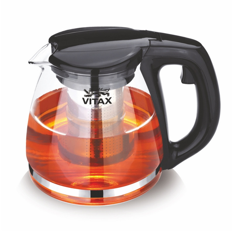 Чайник заварочный Vitax Arundel VX-3301 стеклянный/нержавеющая сталь 1.1 л. Объем 1100 мл. Изготовлен из высококачественного боросиликатного термостойкого стекла. Контейнер-фильтр из пищевой нержавеющей стали 18/10. Не нагревающаяся пластиковая ручка, удобная кнопочная система открывания крышки для быстрого извлечения фильтра. Подходит для мытья в посудомоечной машине