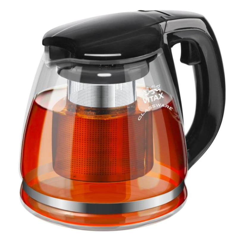 Чайник заварочный Vitax Arundel VX-3312 стеклянный 1.5 л. Vitax Заварочный чайник VX-3312 Arundel изготовлен из высококачественного боросиликатного термостойкого стекла, контейнер-фильтр из пищевой нержавеющей стали 18/10, ненагревающаяся пластиковая ручка, удобная кнопочная система открывания крышки для быстрого извлечения фильтра. Объем: 1500 мл. Подходит для мытья в посудомоечной машине.
