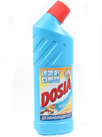 Чистящий гель для туалета Дося с морским запахом для универсального применения: дезинфицирует, чистит и отбеливает, убивает микробы.