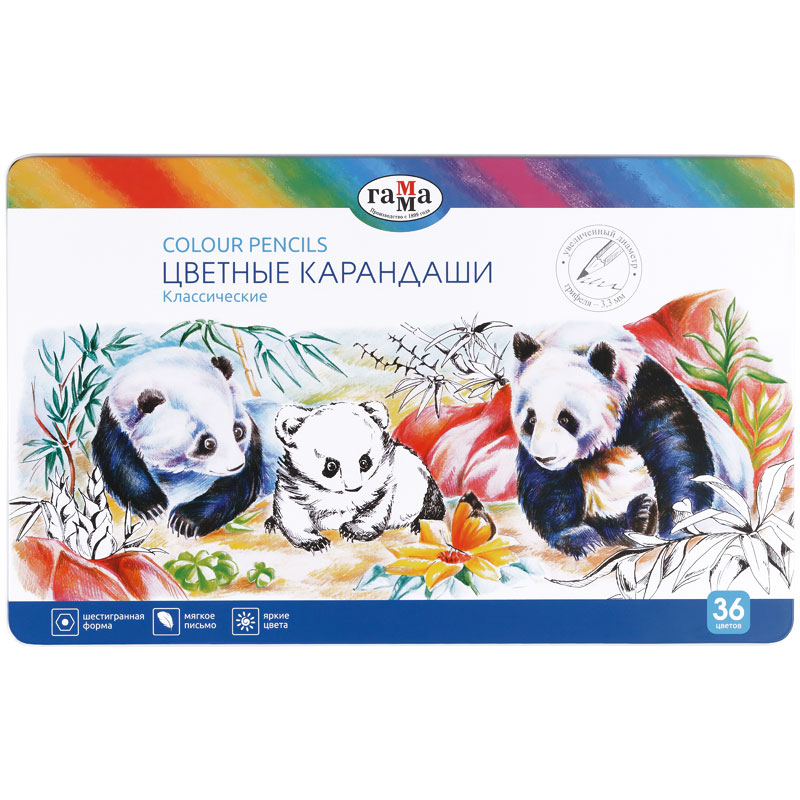 Цветные карандаши ГАММА серии «Классические» в стильном металлическом пенале отлично подходят в качестве подарка, а также их удобно брать с собой на занятия или прогулку. Увеличенный диаметр грифеля 3,3 мм способствует лёгкому скольжению и комфортному рисованию по бумаге любого типа. Металлическая упаковка надёжно сохранит карандаши от повреждений. Натуральная высококачественная древесина специальной обработки гарантирует комфортную заточку без зазубрин и заноз. Проклеенный ударопрочный грифель не крошится во время рисования и не ломается после падения. Яркие карандаши имеют хорошую укрывистость благодаря высококачественным пигментам в составе.