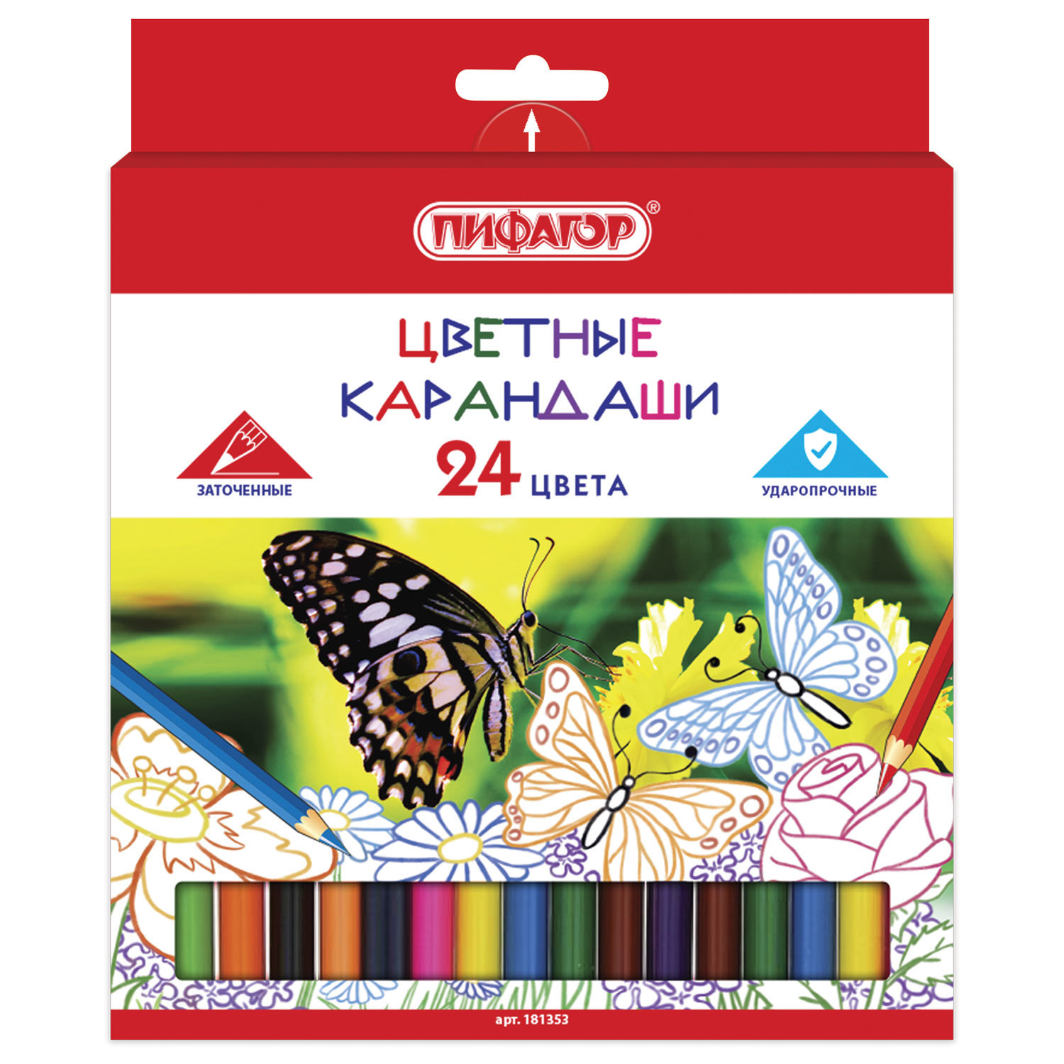 Цветные карандаши Пифагор 24 цв/уп. "Ассорти" арт. 181353
