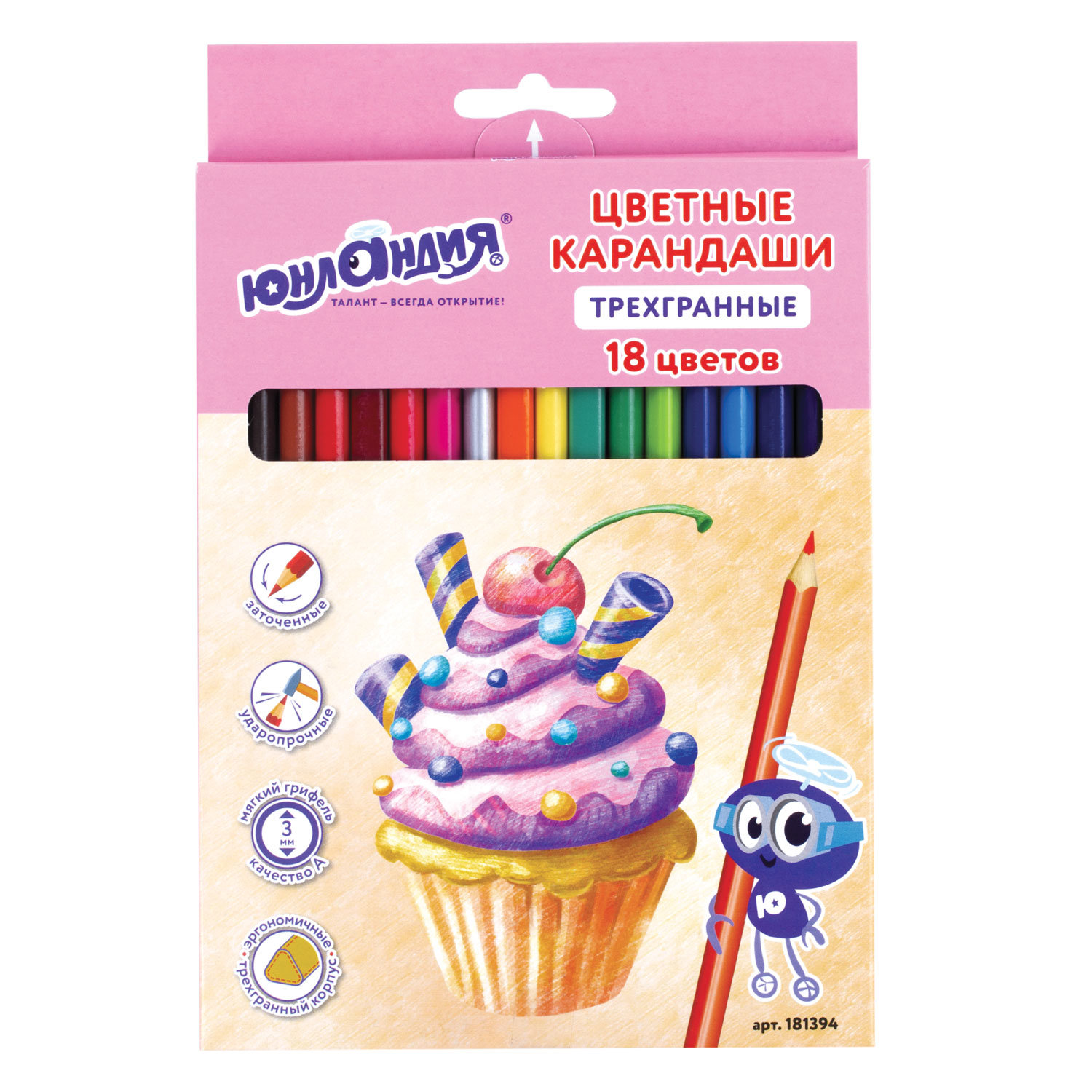 Цветные карандаши Юнландия 18 цв/уп. "Сладкие истории" 3-х гр. арт.181394